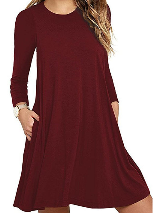 Fancyglim Women Crew Neck Dresses Casual T-Shirt Long Sleeve Dress with Pockets