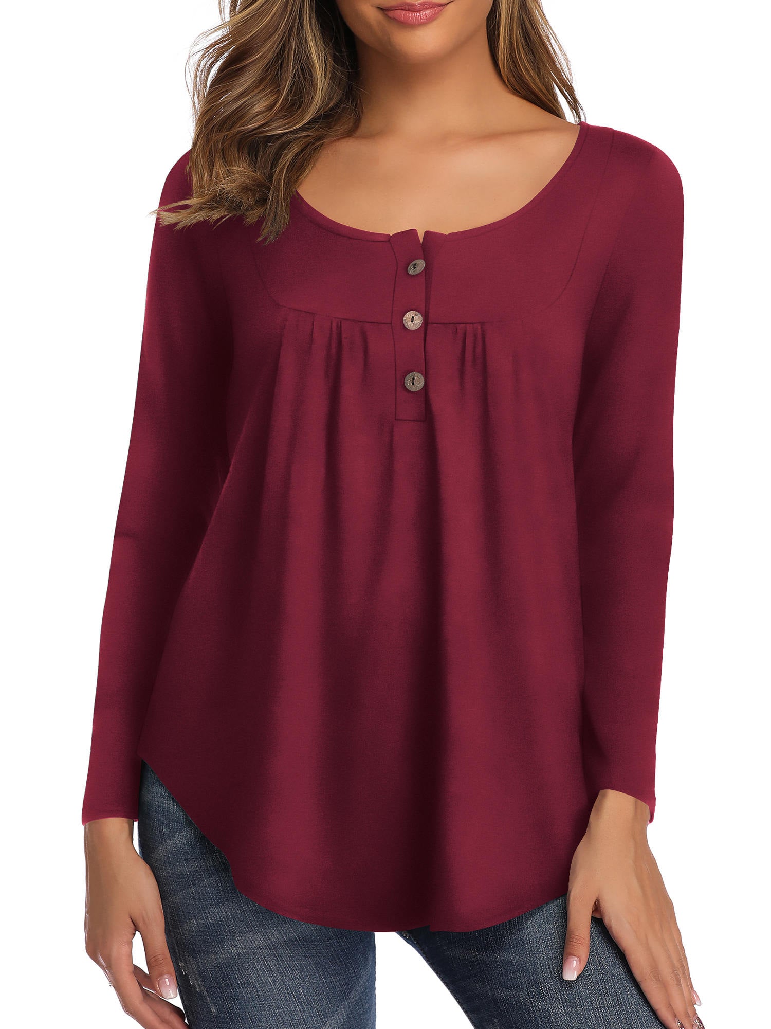 Fancyglim Women's Long Sleeve Henley Shirt Casual Button Up Tunic Tops